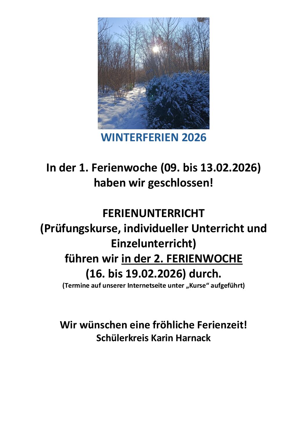 Der Schülerkreis informiert – Winterferien 2026*
