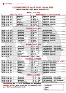In der ersten Ferienwoche (12.-16.02.2024) findet kein Unterricht statt.